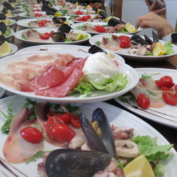 Moltissime le varietà di pesce presenti nella nostra offerta gastronomica, così come tanti i piatti del nostro menù: calamari, cozzata, crudité, trofie con scampi, fritto misto, grigliata di pesce, branzino, salmone e il nostro speciale antipasto Positano con un mix di tante varietà di pesce. Le freschissime e squisite portate, con prezzi giusti, faranno innamorare chiunque e renderanno le tue cene aziendali a Saronno e limitrofi un successo garantito.